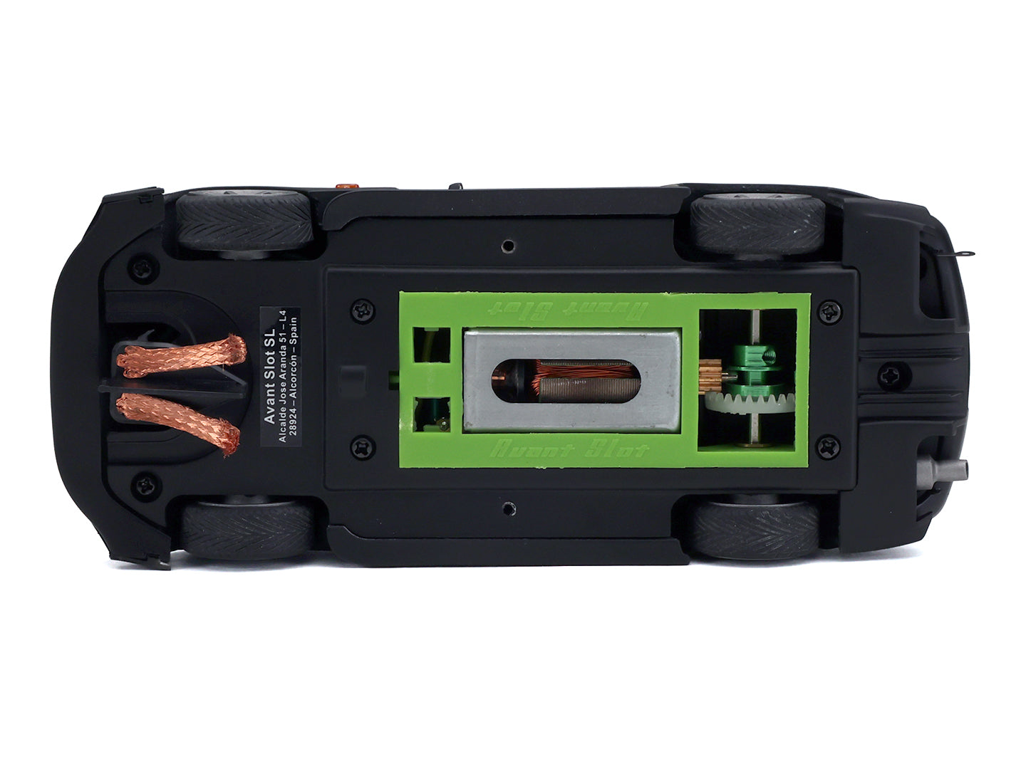 Featuring high-definition resin bodywork, injected plastic chassis, steel axles, silicone tires, inline motor configuration.