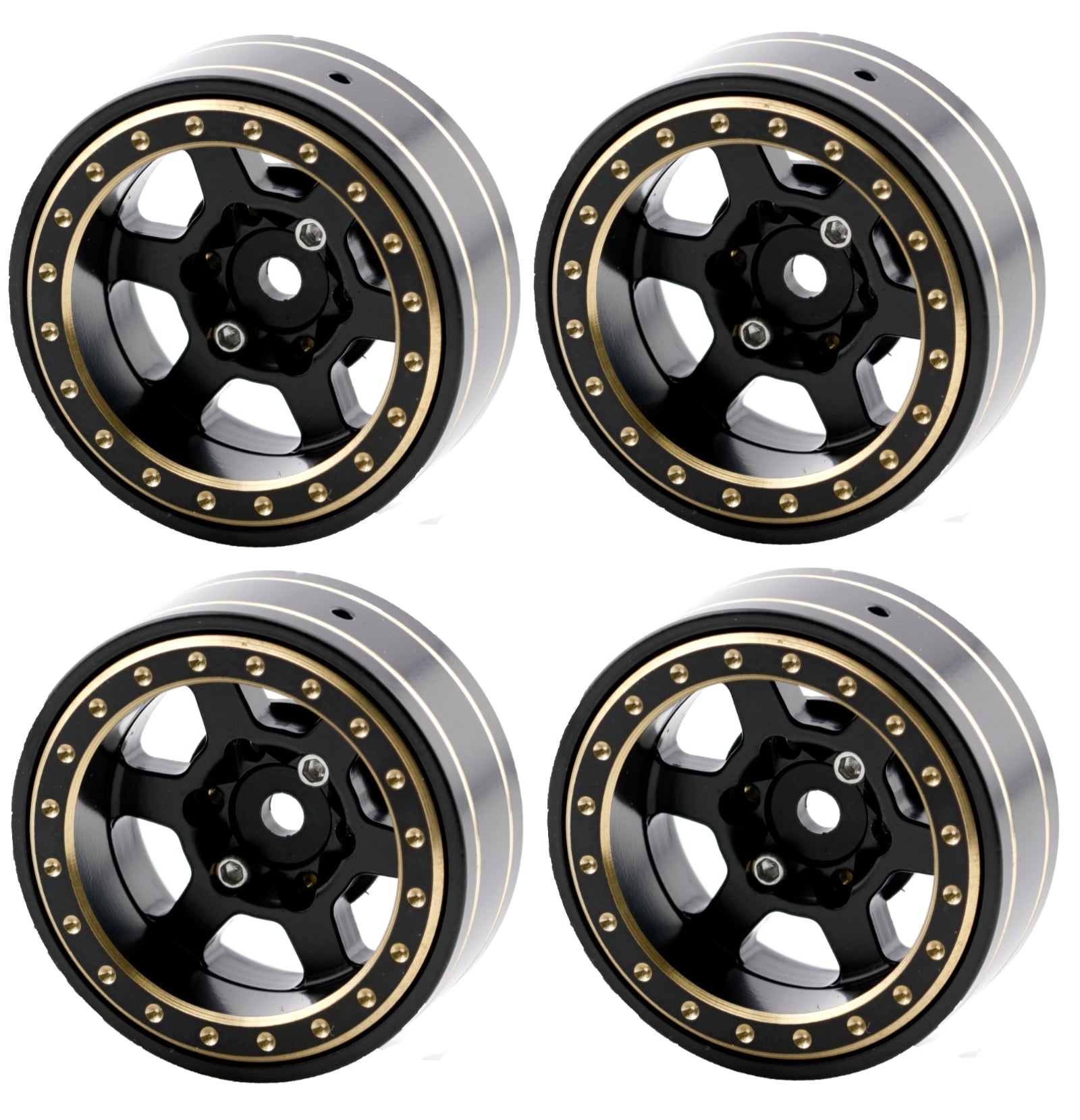 Powerhobby 1.1" 6-Spoke Brass Beadlock Wheels offset -3.75mm (4) 1/24