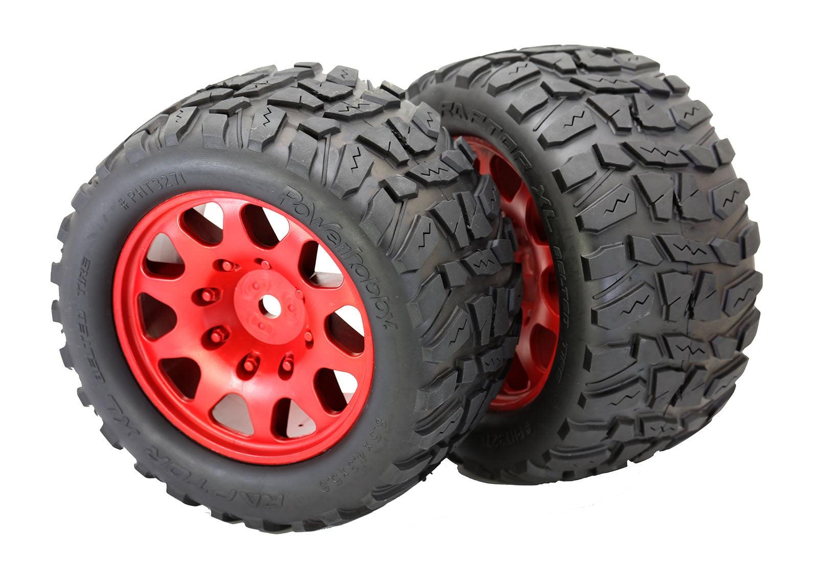 Powerhobby Raptor XL Belted Tires / Viper Wheels (4) FOR Traxxas X-Maxx RED
