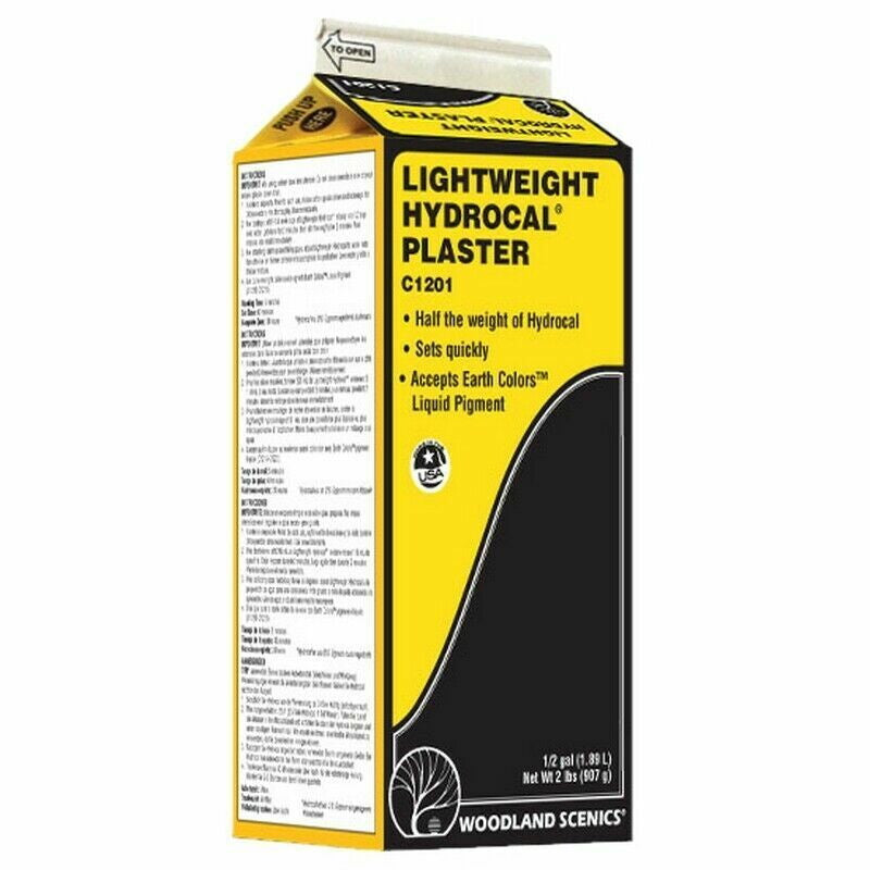 FEATURES: Specially formulated for terrain model builders. Half the weight of Hydrocal and goes twice as far. It's the tough, quick setting product you will prefer! Use it for casting rocks, creating hard shell scenery, filling in around castings and as an adhesive. Leaves a smooth finish. May be used on Plaster Cloth for making strong hard surfaces. May be tinted with Woodland Scenics Earth Colors (liquid pigments). Instructions are listed on the side of the package.